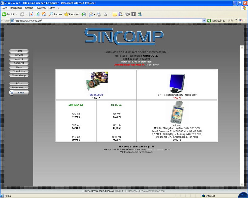 Die Seite der Fa. SinComp aus Sinning. (Klick auf das Bild um es zu vergrössern)